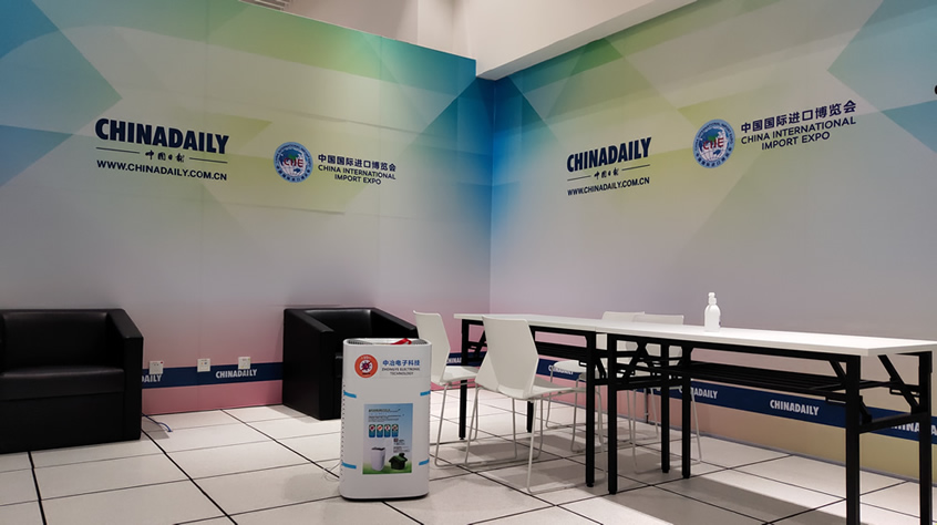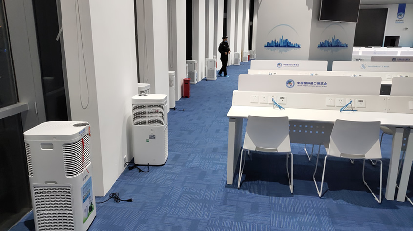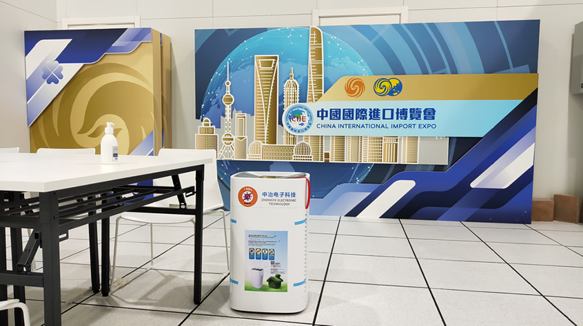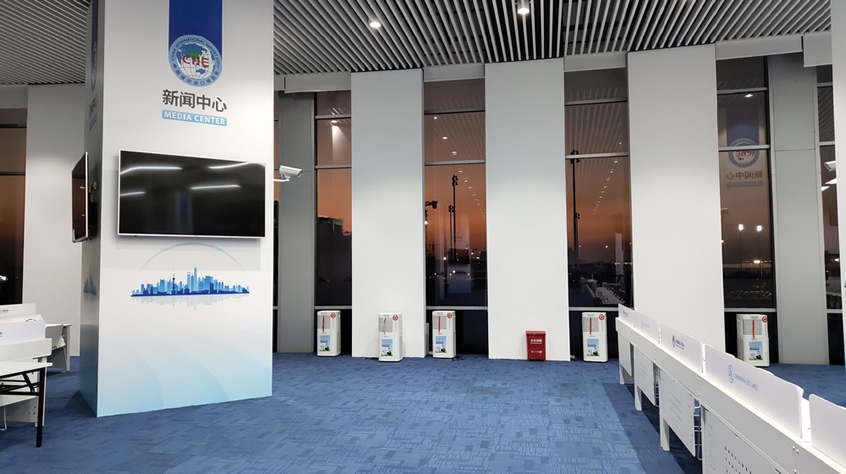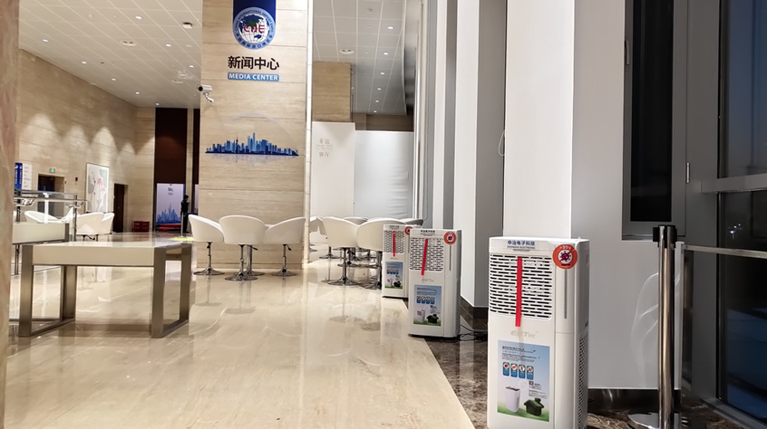 純物理方法殺滅新冠病毒的空氣凈化器在國(guó)家會(huì)展中心(上海)第三屆進(jìn)博會(huì)10000平方新聞中心安裝完畢,以及新聞中心全體工作人員人手一份的殺滅新冠易呼吸口罩伴侶已送到指定地點(diǎn),寧波中冶電子科技公司為進(jìn)博會(huì)新聞中心安全防疫保駕護(hù)航!