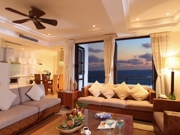 豪華開放式海景套房(1房1廳) 面積:64平方米 樓層:3層以上 海景:90度左右 陽臺:有 大床:1.8米*2米 浴缸:有 寬帶:免費