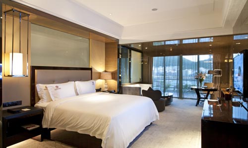 三亞鴻洲國際游艇酒店是南中國海上獨一無二的游艇主題白金五星級專業(yè)酒店。它具備了海上運動所需的四大元素,即:航海人舒適的港灣,補充體能的加油站,放飛心情紓緩精神的家園,出海巡航的大本營。酒店設計同時兼顧了觀光旅游、會務休閑的需求功能。酒店依山傍水,似鑲嵌于三亞鹿回頭山麓邊的明珠,屹立在三亞兩河交匯入海的天然優(yōu)良避風港岸邊。從酒店舉目周邊,青山坐擁萬綠叢中繁花錦簇椰樹婆娑,岸邊碼頭齊整千帆?俊H齺嗻欀迖H游艇酒店總建筑面積35607.71平方米,酒店周圍地面為園林景觀、海帆酒吧、碼頭泊位及配套設施。三亞鴻洲國際游艇酒店地下一層為停車場、員工區(qū)域、后勤保障區(qū)域、廚房及酒窖;地面一層:海上運動中心,游艇會所、商鋪、租賃辦公區(qū)、SPA及桑拿區(qū)、大宴會廳及會議中心;地面二層:酒店大堂、前廳接待、大堂吧、全日制餐廳、特色餐廳、商務中心、客用洗手間、客房28間;地面三、四層均為海景客房,酒店還提供一系列個性服務,是旅游度假、商務會議的理想之選。