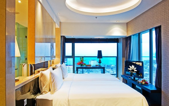 三亞黎客國際酒店座落于三亞市繁華商業(yè)圈,坐擁河西路、文明路和新風路,毗鄰享譽島內外的春園海鮮廣場及200畝生態(tài)城市公園,明珠廣場、三亞步行街等知名購物中心以及三亞汽車總站近在咫尺,距三亞鳳凰國際機場僅30分鐘車程,步行5分鐘即可親臨享有聲譽的“椰夢長廊”---三亞灣,踩白沙細水,聽椰風海韻,看綠影婆裟,盡享三亞的天藍海碧。來自中法港臺新加坡的國際設計團隊,非凡手筆彰顯時尚溫馨兼具的獨特風格。三亞黎客國際酒店獨高99米,總27層,擁有各類豪華客房。擁享都市內唯一超5000㎡的巴厘島風情叢林中庭和獨具特色的空中泳池。酒店配套措施完善,我是一只魚西餐廳、融廷中餐廳、西雅圖海鮮餐廳、小林吧、庭園酒廊等應有盡有,還有具國際水準的水療館,商務健身中心、會議室及臺灣名品店。這是一座優(yōu)雅奢華的城,更是一個精致溫馨的家,為您提供集養(yǎng)生、休閑、商務、度假為一體的最佳生活體驗。
